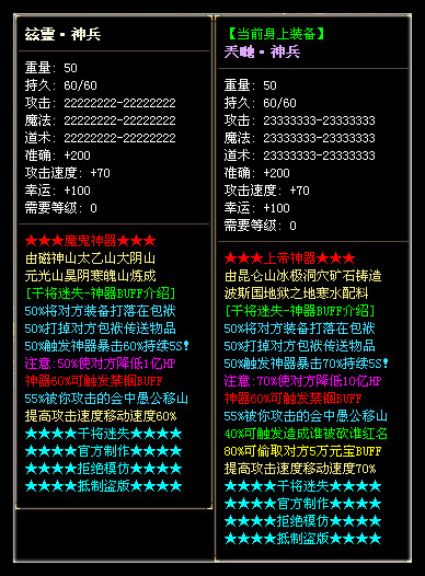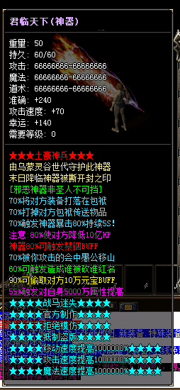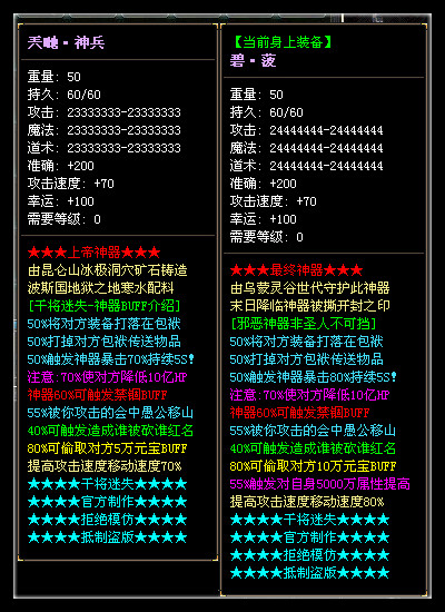 游戏特色:所有装备都可进化大极品,所有BUFF完美触发,在这里不过多介绍了,进游戏自行体验吧!