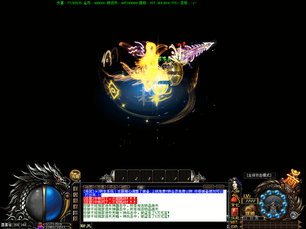 转生服务:人物转生可以领取丰厚的礼品,转生越高人物自身攻击也越高,不论打怪PK高人一等。