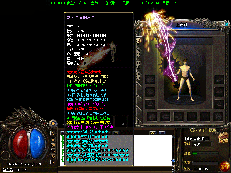 升级介绍:本服最高10000级上线免费5转会员免费15转!越高转生的地图,爆率也越好。